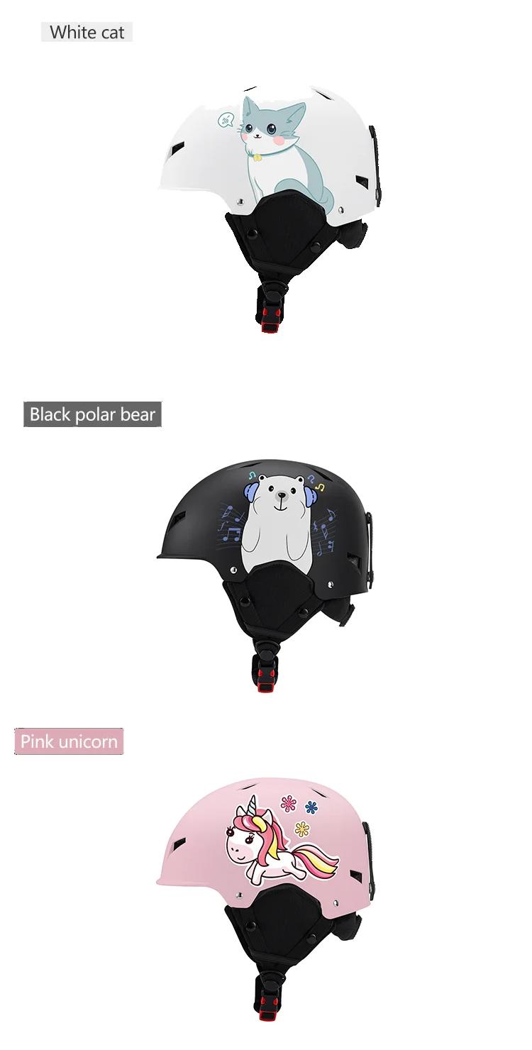 Eastinear HT-007 Ultra-Light Ski Helmet with Cute Side Print One-Piece Molded Design Super Breathable & Warm Unisex Fit for All Snow Lovers Black White Pink Options